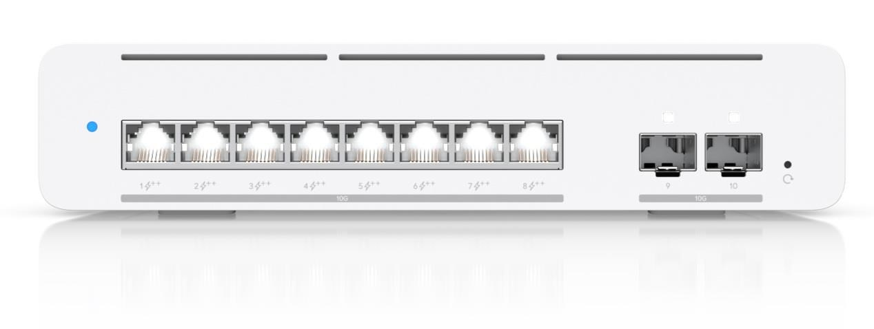 Technické parametry Konektory a rozhraní Rychlost LAN:(8) 100M/1G/2.5G/5G/10Gbps Optické rozhraní:(2) 1G/10Gbps Napájení Typ napájení:DC konektor Podporované PoE-Out standardy:802.3bt Počet PoE Out portů:8 PoE budget [W]:155 Max. spotřeba energie [W]:60 Napájení přes konektor/svorkovnici:54V DC Fyzické charakteristiky Provedení:Desktop Ventilátory:Ne Šasi:Kovové Provozní teplota [°C]:-5 až 45 Šířka [mm]:210 Výška [mm]:44 Hloubka [mm]:174 Obecné Rychlost přepínání [Gbps]:200 Tabulka MAC adres:32000 Rychlost předávání paketů [Mpps]:149 Software Management:UniFi Network Funkce:VLAN, DHCP snooping, L2, L3 Výchozí IP adresa:192.168.1.20, Dynamická z DHCP Výchozí jméno a heslo:ubnt / ubnt.