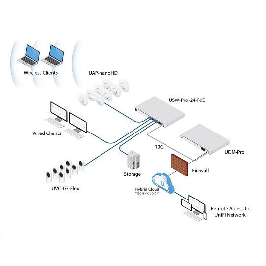 UniFi Dream Machine Pro od spoločnosti Ubiquiti Networks je komplexné sieťové riešenie pre malé a stredné podniky. Je to veľmi výkonné zariadenie s výškou 1U v 19" stojane a kombinuje tieto funkcie: