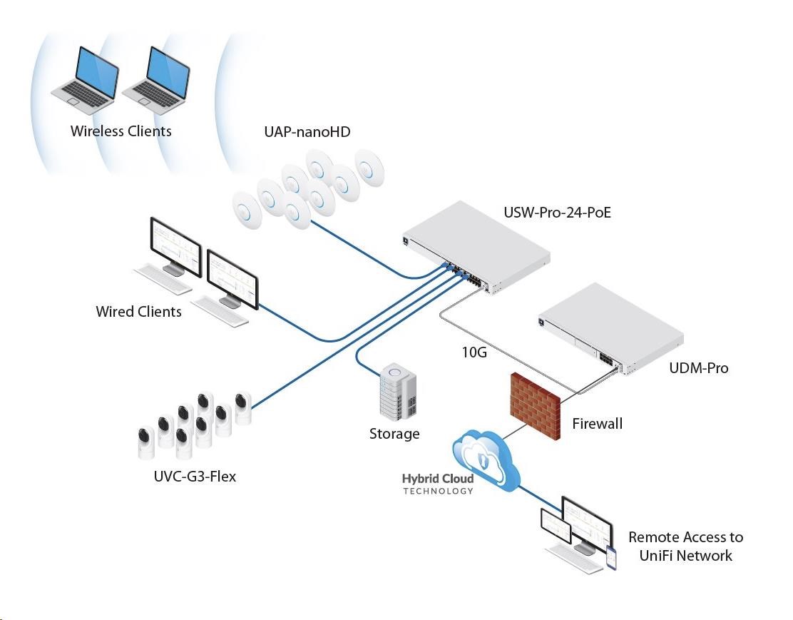 UniFi Dream Machine Pro od spoločnosti Ubiquiti Networks je komplexné sieťové riešenie pre malé a stredné podniky. Je to veľmi výkonné zariadenie s výškou 1U v 19" stojane a kombinuje tieto funkcie: