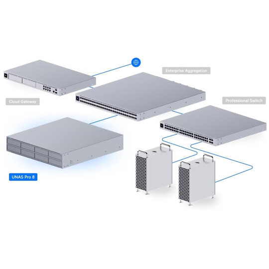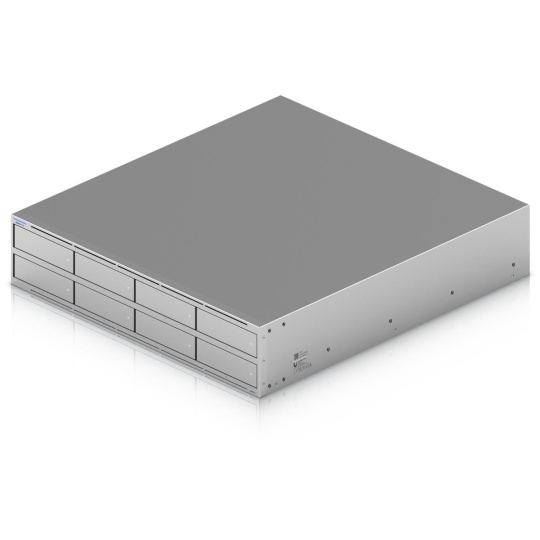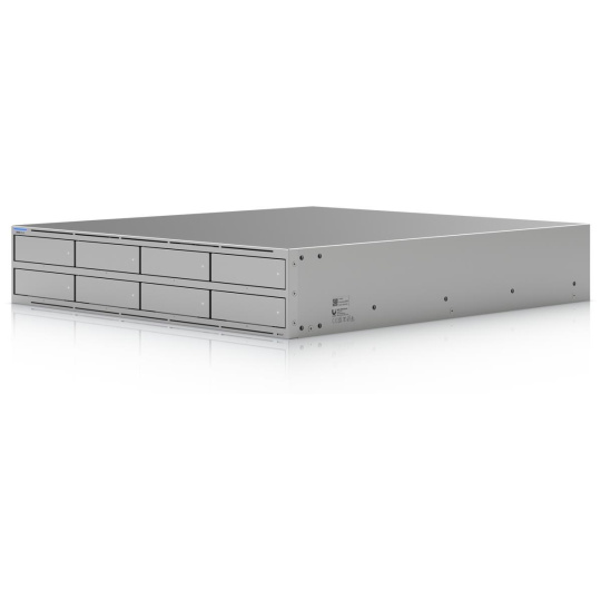 Popis produktu Síťové úložiště UniFi velikosti 2U pro montáž do racku s (8) pozicemi pro 2,5/3,5" pevné disky, (2) sloty pro M.2 NVMe SSD cache, (1) 10 GbE RJ-45 portem a (2) 10G SFP+ porty pro uplink. Poháněn je čtyřjádrovým procesorem ARM Cortex-A57, který je doplněný o 16 GB operační paměti. Disponuje dvěmi redundantními napájecími moduly s možností výměny za provozu. Obsah balení • Zařízení • Napájecí kabel a zdroj • Příslušenství pro montáž do racku Technické parametry Konektory a rozhraní Počet slotů pro HDD:8 Počet M.2 slotů:2 Rychlost LAN:(1) 100M/1G/2.5G/5G/10G Gigabit LAN:Ano Optické rozhraní:(2) 10Gbps Ostatní:Bluetooth Napájení Typ napájení:Ze sítě (230V) Redundantní napájení:Ano Max. spotřeba energie [W]:250 Napájení přes konektor/svorkovnici:230V AC Fyzické charakteristiky Provedení:Rackmount Materiál:Ocel Počet "U" pozic:2 LED indikace:Ano Provozní teplota [°C]:-5 až 40 Hmotnost [kg]:11,5 Šířka [mm]:442 Výška [mm]:87 Hloubka [mm]:480 Hardware Velikost operační paměti [GB]:16 CPU:ARM Cortex-A57.