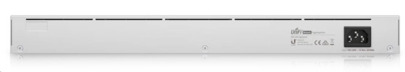 UniFi Switch Aggregation je agregačný manažovateľný L2 UniFi Switch s 8x SFP+ slotmi podporujúcimi rýchlosti 1G/10Gbps. Veľmi kompaktný dizajn bez ventilátorov v 19" racku je doplnený informatívnym dotykovým displejom, ktorý dokáže zobraziť štatistiky jednotlivých portov, chybové stavy, využitie siete a ďalšie informácie.