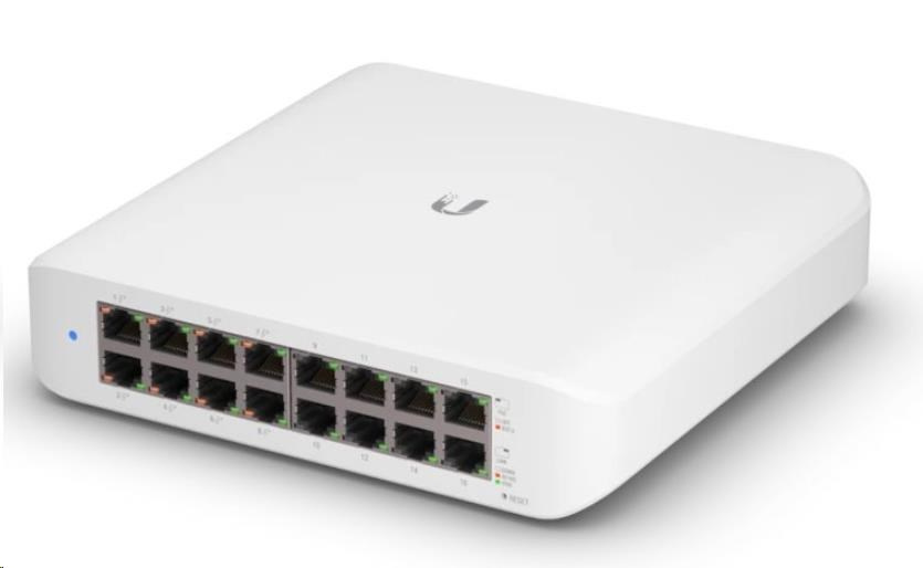 USW-Lite-16-PoE je gigabitový PoE L2 prepínač od spoločnosti Ubiquiti Networks v stolnom vyhotovení s maximálnym rozpočtom PoE 45 W. Spravovateľný prepínač so 16 gigabitovými metalickými portami a celkovou priepustnosťou 16 Gb/s. Len 8 zo 16 portov podporuje PoE 802.3af/at s maximálnym výkonom 30 W/port. Prepínač je vhodnejší ako dátový prepínač s niekoľkými zariadeniami na okraji siete vďaka nízkemu rozpočtu PoE
