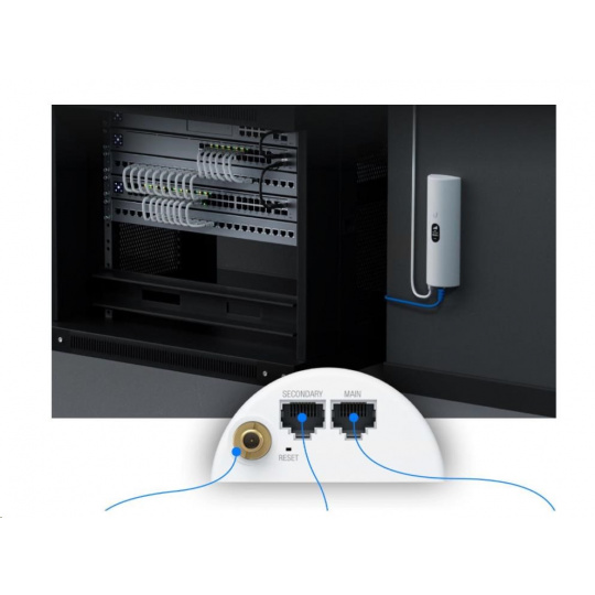 Zariadenie Ubiquiti U-LTE-Pro môžete umiestniť kdekoľvek, kde je najlepší signál, pretože ho možno napájať pomocou 802.3at PoE+ z prepínača, napr. ako napríklad UniFI PoE Switch. Môžete ho pripevniť na stenu pomocou montážnej konzoly alebo máte možnosť ho prilepiť a pripevniť na povrch. Zariadenie má sekundárny port, ktorý ponúka premostenie a pasívny priechod PoE (užitočné pre kameru, prístupový bod alebo iné zariadenie).