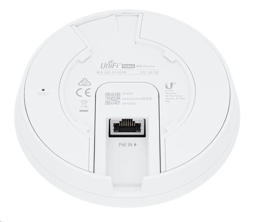 Kamera UniFi Protect G4 Dome má 4MP snímač (2688 x 1512px) s 24 snímkami za sekundu, pevný objektív (cca 4 mm), IR prísvit na nočné videnie, mikrofón a reproduktor. Kamera má veľmi robustné kovové telo, odolnosť proti vandalizmu IK08 a krytie IPx4 proti poveternostným vplyvom. K sieti sa pripája pomocou gigabitového ethernetového portu, ktorý podporuje napájanie cez kábel - 802.3af PoE.