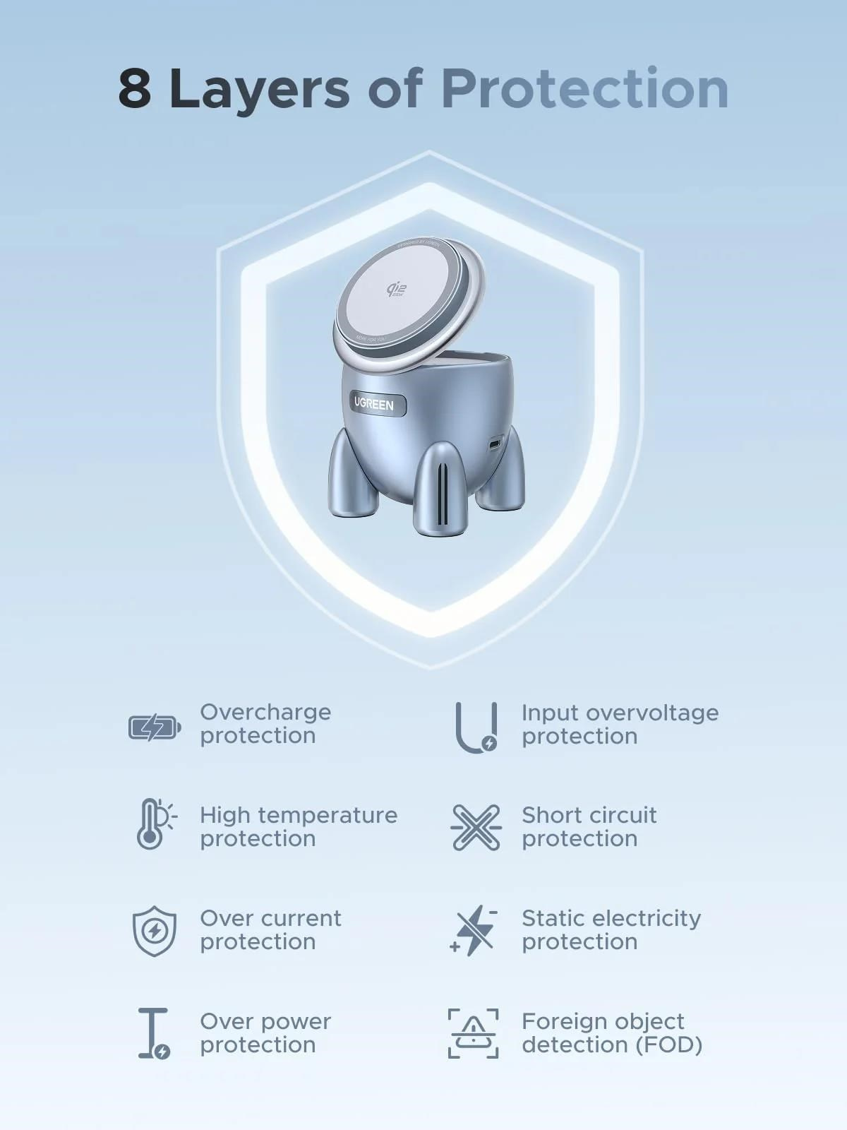 - Široká kompatibilita: Kompatibilní s iPhone 17/16/15/14/13/12, AirPods 4/3/2/Pro 3/2 a dalšími zařízeními s podporou Qi. Pro nejlepší výkon se doporučuje magnetické pouzdro nebo použití bez krytu