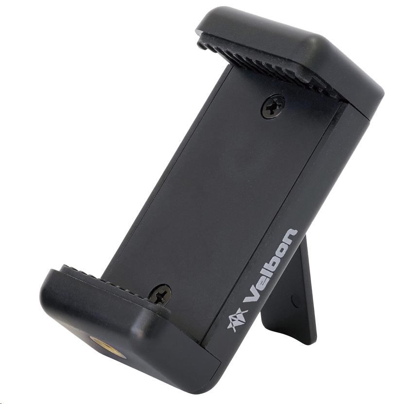 Malý flexibilný statív od spoločnosti Velbon so zloženou dĺžkou 43,5 cm a maximálnou dĺžkou 123 cm. Statív sa dodáva s namontovanou otočnou a naklápacou hlavou a držiakom na smartfón. Hlava umožňuje plynulé otáčanie o 360° a manipuláciu s ňou, pričom sa dá ľahko prepnúť do režimu na výšku.