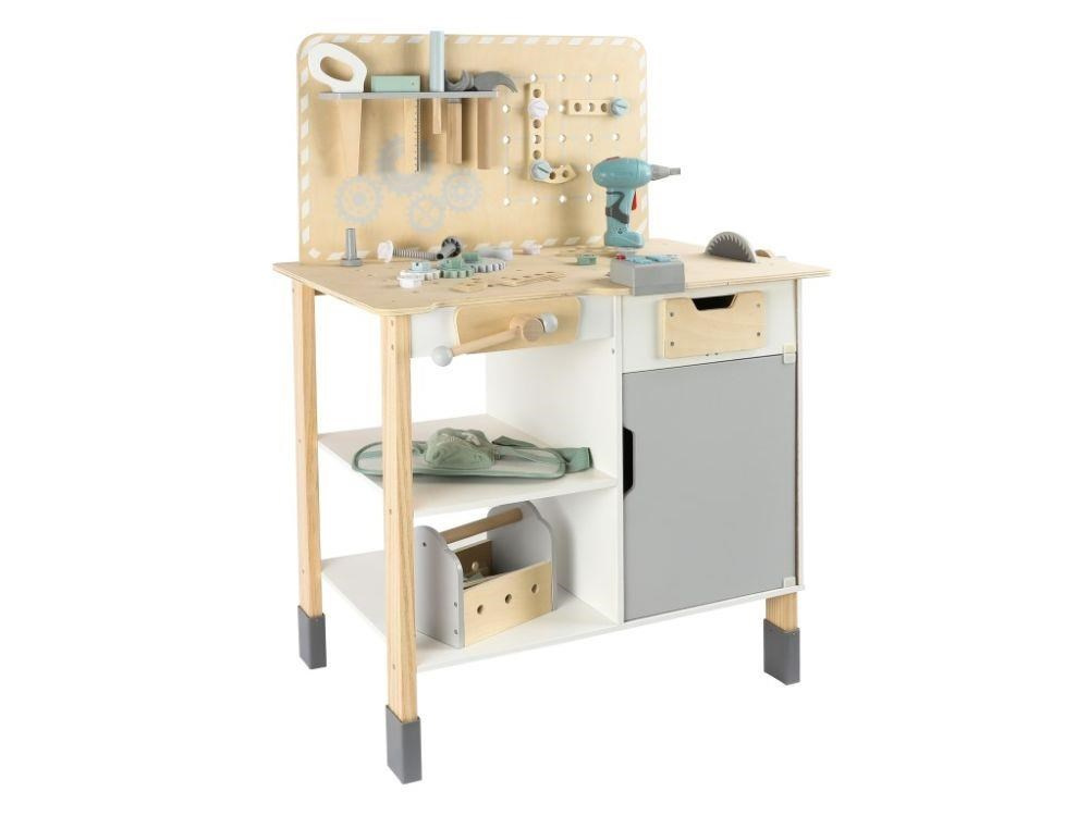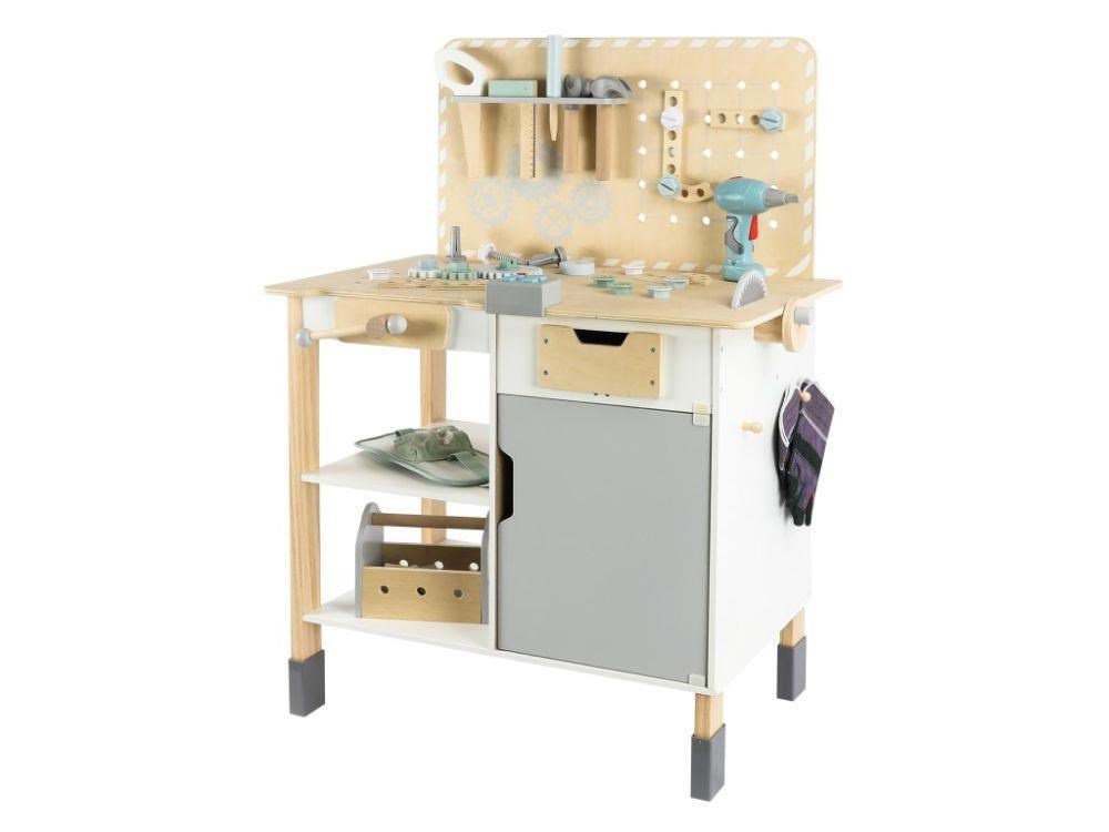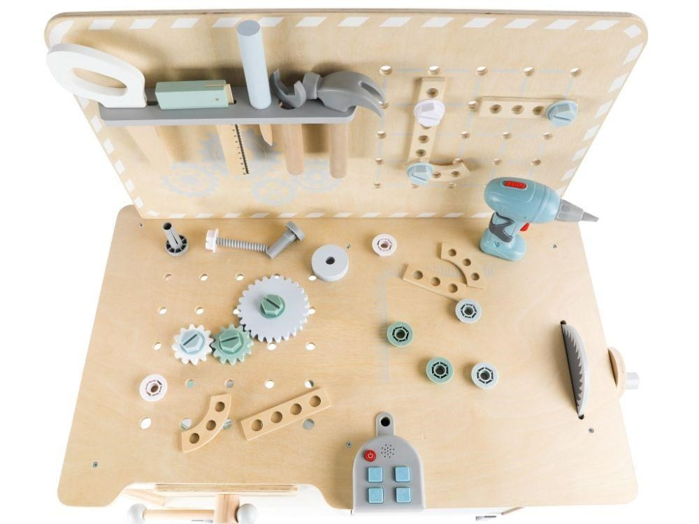 Velký dřevěný dětský ponk s nářadím a rozšířeným příslušenstvím + opasek na nářadí ZDARMA