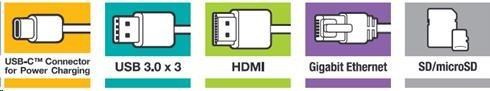 Rozhranie USB-C (USB 3.1 GEN 1), 3 x USB 3.0, HDMI, Gigabit Ethernet, SD/microSD