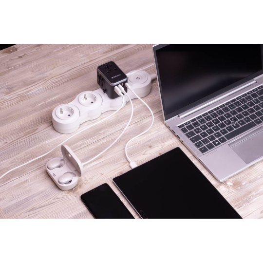 - Adaptér USB-C na HDMI umožňuje bezproblémové pripojenie akéhokoľvek kompatibilného zariadenia USB-C k projektoru, televízoru alebo monitoru.