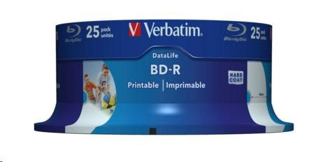 VERBATIM BD-R SL Datalife (25-pack)Blu-Ray/Spindle/6x/25GB Wide Printable