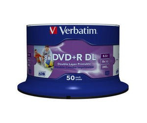 VERBATIM DVD+R(50-pack)DoubleLayer/Spindle/8X/8.5 GB/tlačiteľné/bez identifikátora