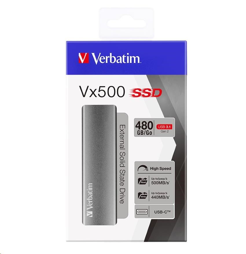 VERBATIM externý SSD disk 480GB Vx500 strieborný USB-C