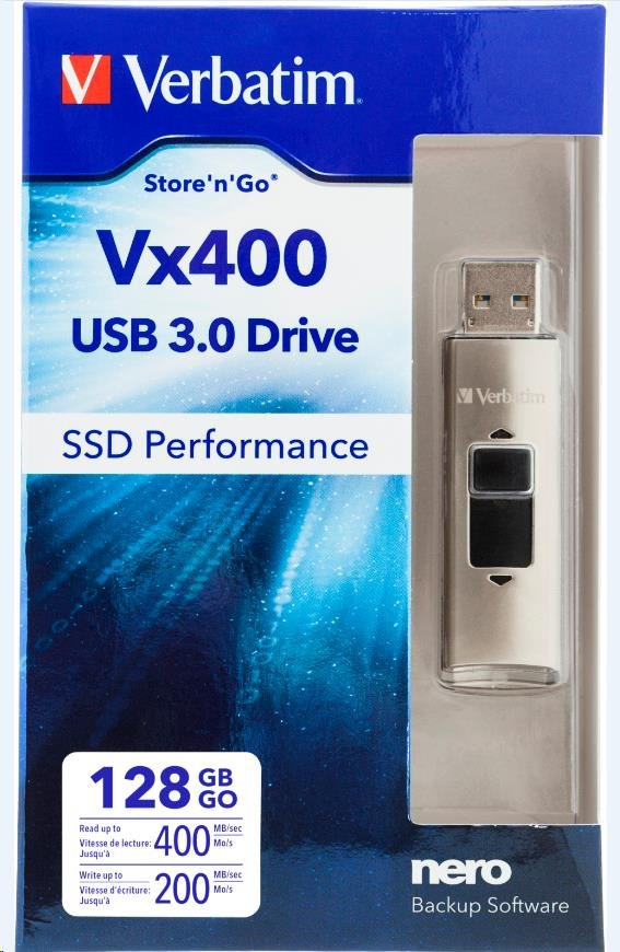 VERBATIM Flash disk 128 GB Store 'n' Go, SSD Vx400, USB 3.0, strieborná