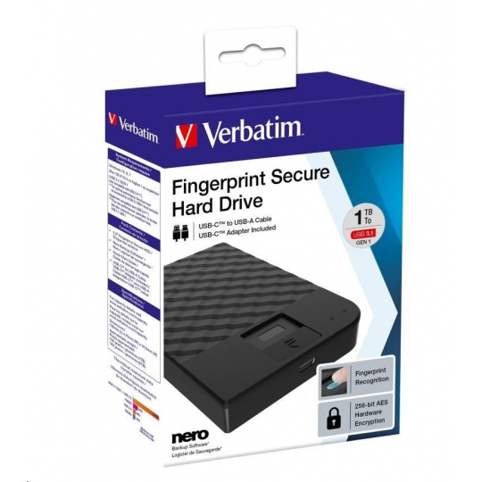 VERBATIM HDD 2 TB Prenosný pevný disk zabezpečený odtlačkom prsta, čierny GDPR