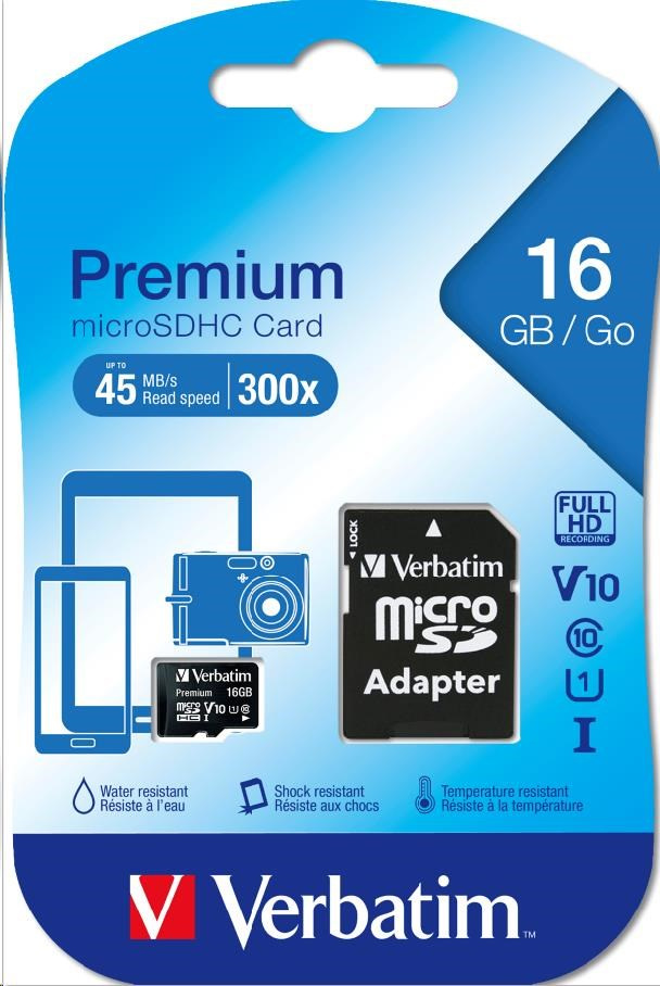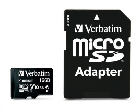 Karta VERBATIM MicroSDHC 16GB Premium, U1 + SD adaptér