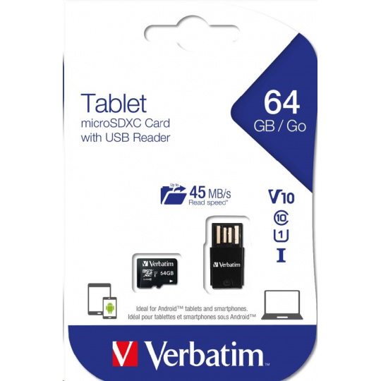 VERBATIM Tablet microSDHC C10/U1 s USB čítačkou 64GB (R:70MB/s, W:10MB/s)