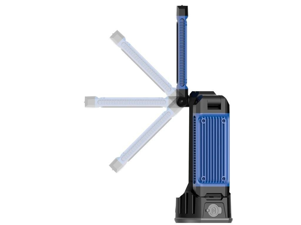 | Režim ovládania: | Rozložte pracovné svetlo a postavte ho. Stlačením vypínača ON/OFF aktivujete svetlo a následne jednotlivými stlačeniami prepínate medzi jednotlivými svetelnými režimami až do prípustného vypnutia. Stlačením vypínača ON/OFF (ikona slnka/ikona svetla) upravujete farbu svetla. Hlava svetla môže byť podľa potreby odmontovaná. |