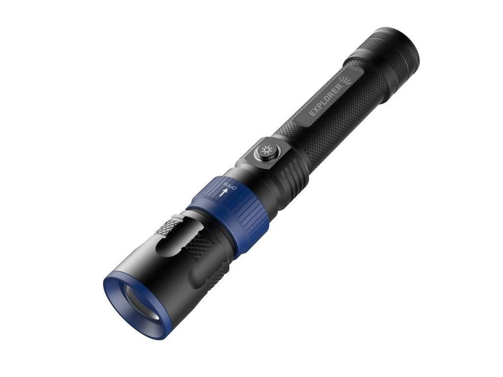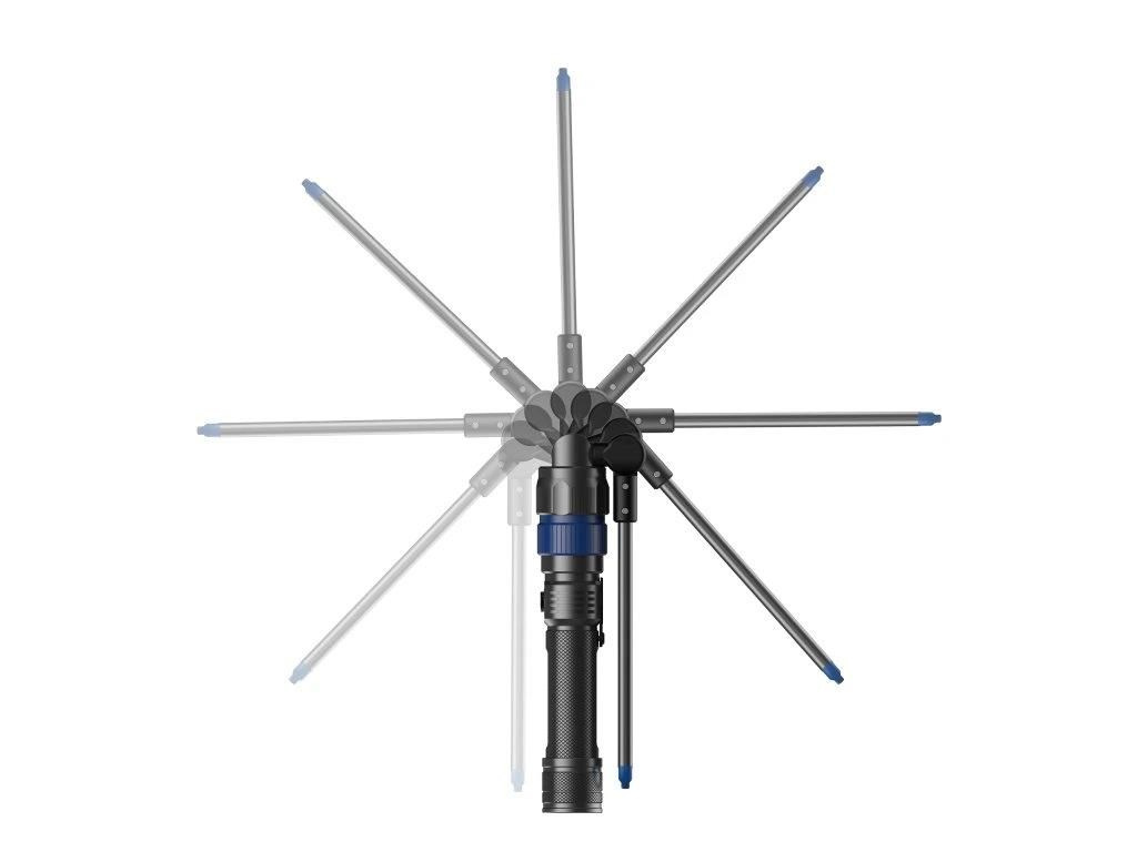 - Jednoduché ovládanie a výmena hlavíc: Stačí stlačiť vypínač ON/OFF a jednoduchými stlačeniami prepínať medzi svetelnými režimami. Pre výmenu hlavíc len ťahnite poistku dole a vyberte požadovanú hlavicu.