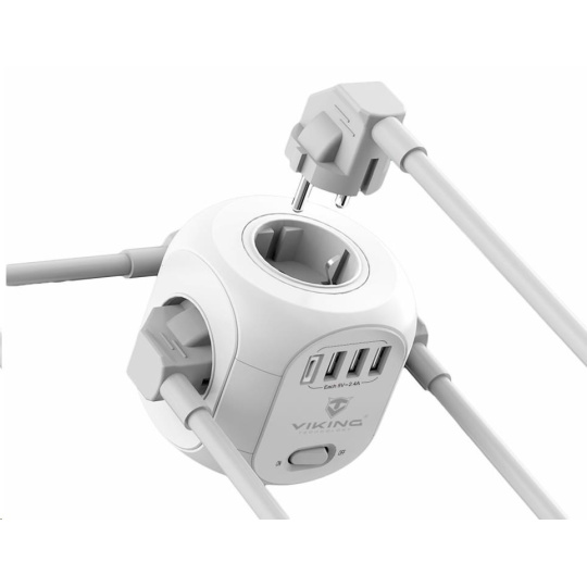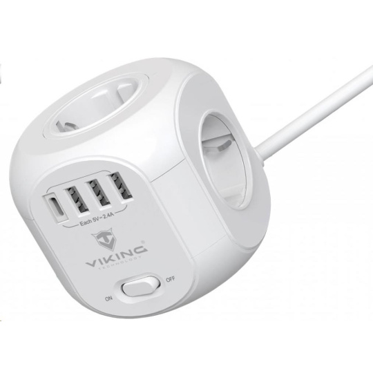 Vďaka šírom 4 AC zásuvkám, 3 portom USB-A a jednému USB-C portu umožňuje Viking AC Cube súčasné napájanie až ôsmich zariadení. Už nikdy nebudete musieť hľadať voľnú zásuvku alebo USB port.