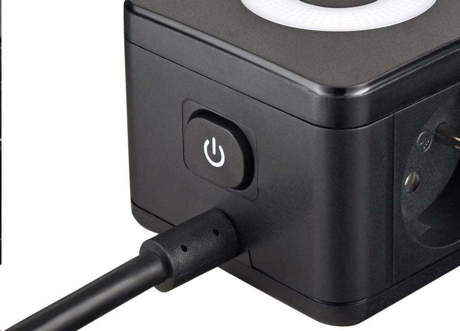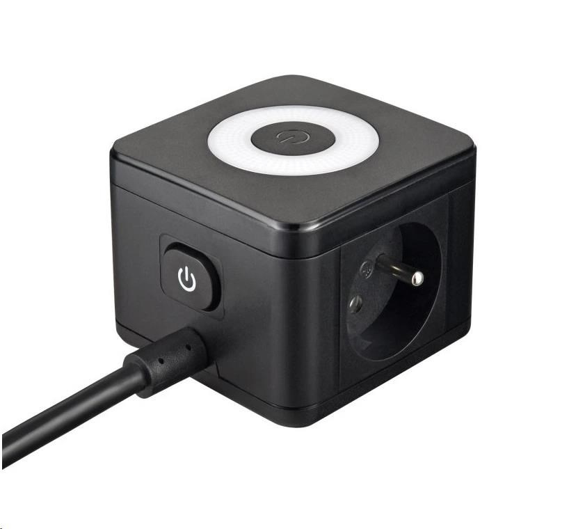 Viking síťový adaptér YC23L, 2x 230 V, 1x USB-A, 2x USB-C, dotykové světlo, délka 1,4 m, černá