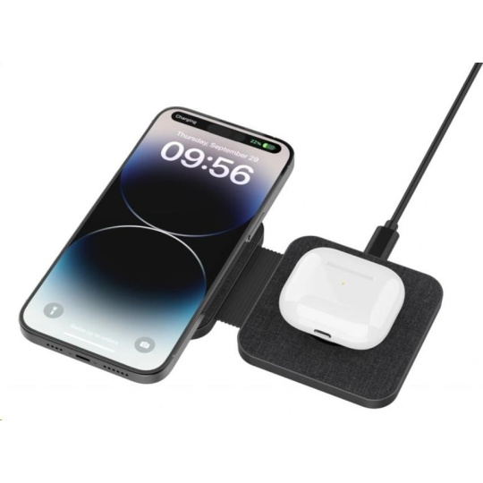 Nabíjačka ponúka dva bezdrôtové výstupy, ktoré umožňujú nabíjanie dvoch zariadení súčasne, čo je ideálne pre mobilné telefóny, hodinky a slúchadlá. Výstupný výkon pre mobilné zariadenia dosahuje až 15W, zatiaľ čo pre hodinky a slúchadlá poskytuje výkon až 2,5W. Súčasťou balenia je tiež USB-C kábel dlhý 1 m, ktorý zabezpečuje kompletné vybavenie pre rýchle a efektívne nabíjanie.
