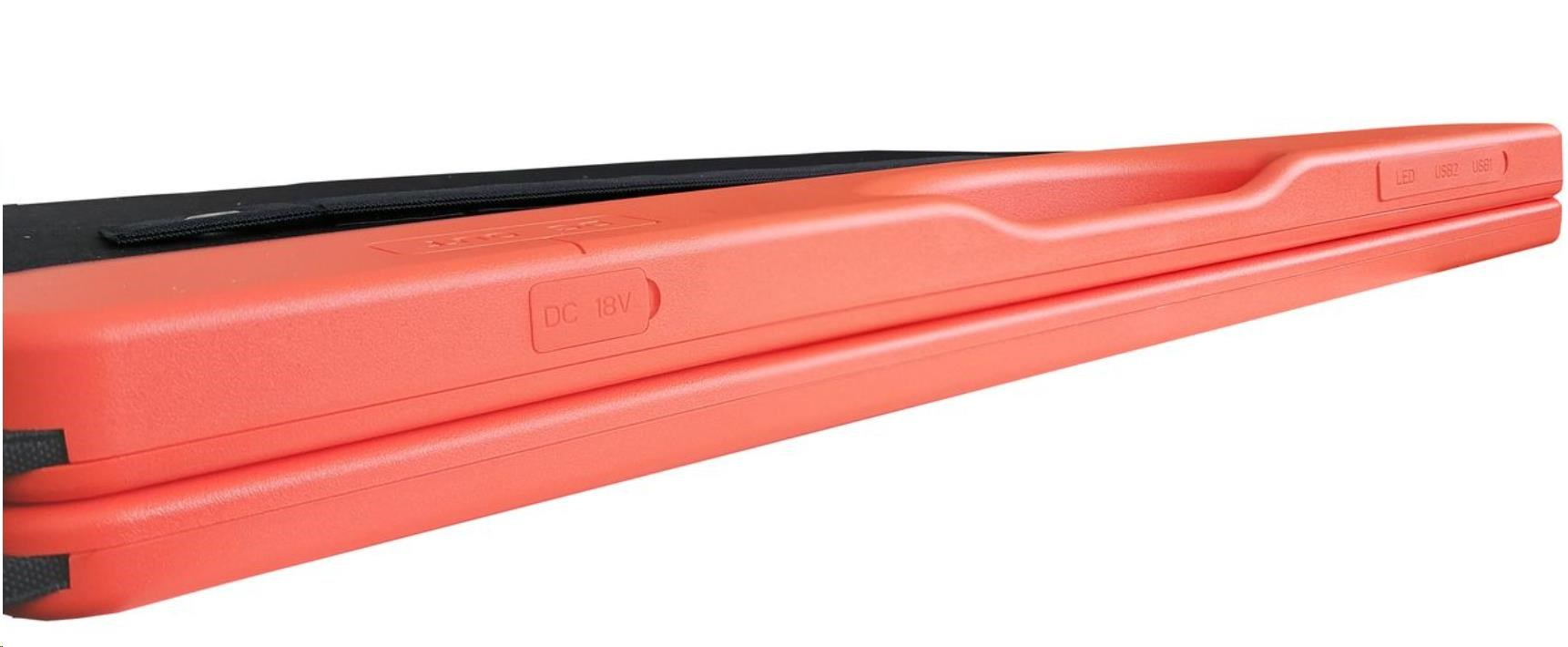 Modul je skladací, ľahký a priestorovo úsporný, a preto je vhodný na množstvo použitia. Panel je možné pomocou integrovaných opôr postaviť pod uhlom 45°, aby bol zabezpečený čo najsilnejší výkon solárneho panelu. Solárny panel VIKING WB120 zvládne nabíjať vaše zariadenia až do napätia 19,8V a 6,06A!