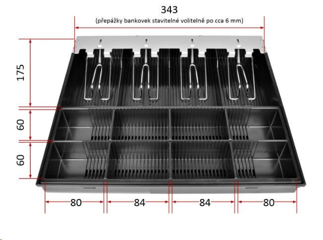 Vyberateľný mincovník a priečinok bankoviek s ľubovoľne nastaviteľnými priehradkami