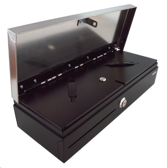 Pokladničná zásuvka Virtuos flip-top FT-460C2 - s káblom, s uzamykateľným krytom, veko NEREZ, čierna