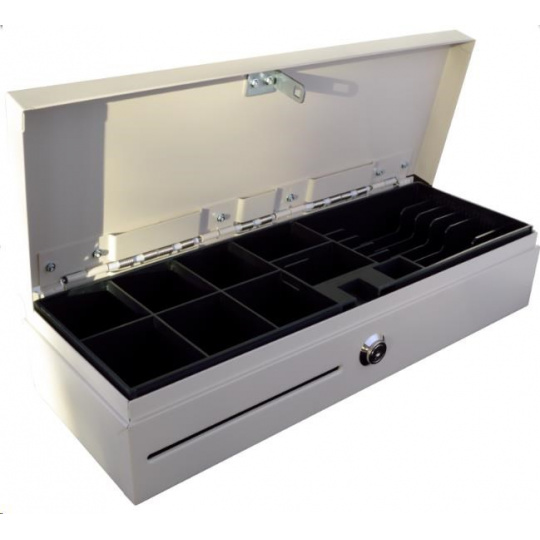 Hlavným dôvodom výberu pokladničnej zásuvky s výklopným vrchnákom (t. j. s horným otvorom) výrazne šetrí miesto. Všetky vlastnosti a funkcie klasickej zásuvky s výsuvným mechanizmom sú zachované.