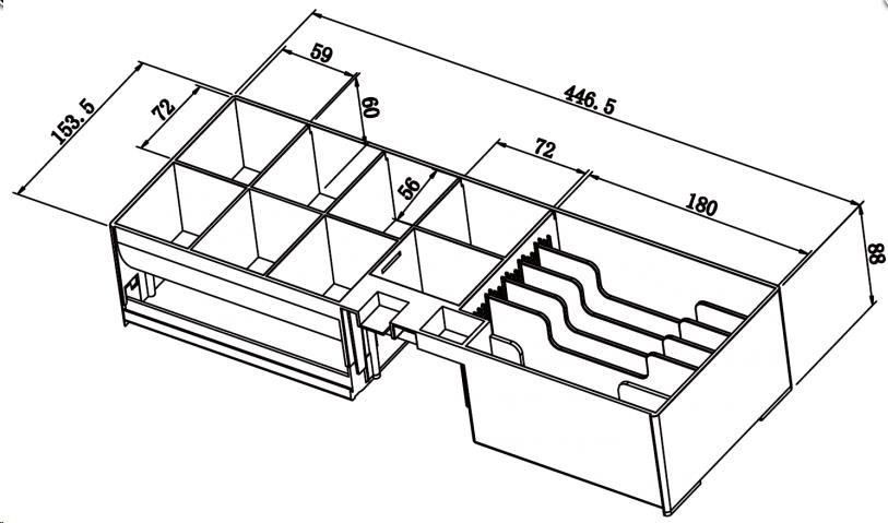 -Vyberateľný zásobník na bankovky (nastaviteľný) a mince