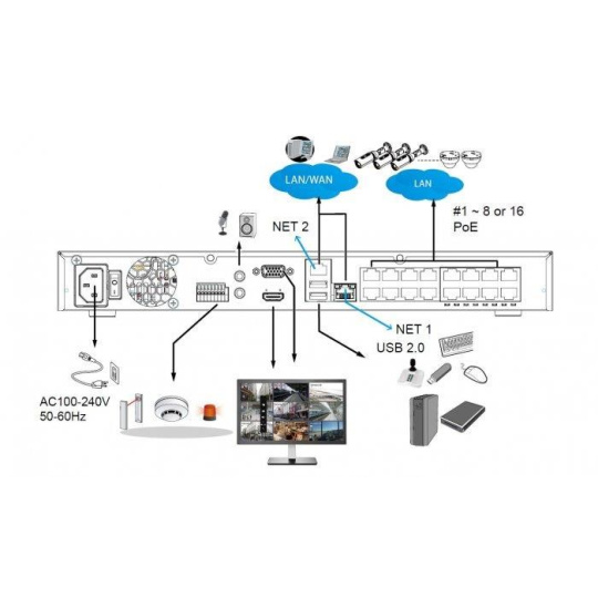VIVOTEK ND9426P je záznamové zariadenie pre 16 IP kamier VIVOTEK s podporou umelej inteligencie (AI) a až dva pevné disky s celkovou kapacitou 32 TB. Integrovaný PoE prepínač pre 16 IP kamier s celkovým výkonom 120W. Kľúčové parametre záznamového zariadenia VIVOTEK ND9426P Pripojenie až 16 IP kamier VIVOTEK alebo iných výrobcov cez ONVIF Integrovaný 16-portový PoE prepínač pre priame pripojenie a napájanie IP kamier podľa 802.3af/at s výkonom 200W Synchrónne prehrávanie až zo 4 IP kamier Výstup HDMI s rozlíšením 4K pre dokonale ostrý obraz USB na prednej a zadnej strane na pripojenie klávesnice, myši, záložného zdroja alebo externého pevného disku na export nahrávok Operačný systém Linux Možnosť pripojenia až 2x HDD s kapacitou 2x 16 TB (pevné disky nie sú súčasťou balenia) Podpora RAID 0 a 1 Možnosť plánovaného zálohovania FTP Lokálny a vzdialený prístup z počítača, tabletu alebo mobilného telefónu Spustenie zariadenia po obnovení napájania (v prípade výpadku napájania) Podpora UPS od popredného svetového výrobcu APC Podpora ONVIF pre pripojenie IP kamier tretích strán Podpora VIVOTEK VIVOCLOUD pre jednoduché pripojenie na internet Prepojenie operačných systémov MS Windows a Apple MacOS vďaka Firefoxu alebo Chrome Mobilné pripojenie z Androidu a iOS pomocou aplikácie iViewer Zariadenie neobsahuje žiadne čínske čipy (produkt mimo Číny) Nadštandardné vlastnosti záznamového zariadenia VIVOTEK ND9426P Podpora umelej inteligencie (AI) pre rýchle a presné vyhľadávanie záznamov Funkcia Live Dewarp a záznam 360° IP kamerou Smart Search II - rozšírené vyhľadávanie v záznamoch Inteligentné vyhľadávanie udalostí VCA Rozhranie kybernetickej bezpečnosti pre jednoduchú analýzu útokov na zariadenia v systéme Trend Micro IoT Security - antivírus kamerového systému VIVOTEK Smart Stream III pre optimalizáciu dátového toku Podpora prehliadačov MS EDGE, Google Chrome, Mozilla Firefox Podpora IP kamier VIVOTEK so Smart VCA Pripojenie k POS systému Viac o týchto funkciách si môžete prečítať v záložke "Test IP kamery". Odporúčané použitie záznamového zariadenia VIVOTEK ND9426P Rekordér VIVOTEK odporúčame ND9426P pre najnáročnejších používateľov, ktorí sa chcú vyhnúť serverovým aplikáciám. Aj keď je ND9426P určený pre malé kamerové systémy do 16 IP kamier, ponúkam vám rovnaké funkcie ako serverové riešenie pre veľké. Vďaka integrovanej umelej inteligencii môžete v záznamoch veľmi rýchlo a presne vyhľadávať udalosti, ktoré potrebujete, s možnosťou filtrovania áut, ľudí, dokonca aj podľa farby, typu atď. Nová podpora pre prehliadače Edge, Firefox a Chrome z MS Windows aj Apple MacOS..