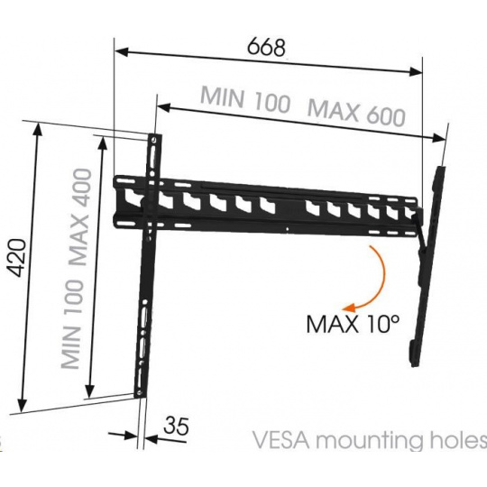 Ďalšie vlastnosti:- Vzdialenosť televízora od steny 35 mm