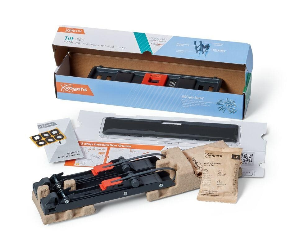 S násteným držiakom TVM 3213 rady COMFORT Tilt volíte štýl, bezpečnosť a príjemný zážitok zo sledovania. Nástenný držiak je ideálny pre prípady, keď je televízor umiestnený na stene o niečo vyššie, napríklad v spálni. Môžete ho nakloniť až o 20° a vytvoriť tak ideálny pozorovací uhol. Nástenný držiak je vhodný pre televízory s uhlopriečkou od 19 do 43 palcov a hmotnosťou do 15 kg. Televízor si naozaj užijete, až keď si ste istí, že je pekne a bezpečne namontovaný. Štýlový držiak TVM 3213 vám túto istotu poskytne. Nástenný držiak je navrhnutý a vyrobený na dlhodobé intenzívne používanie.