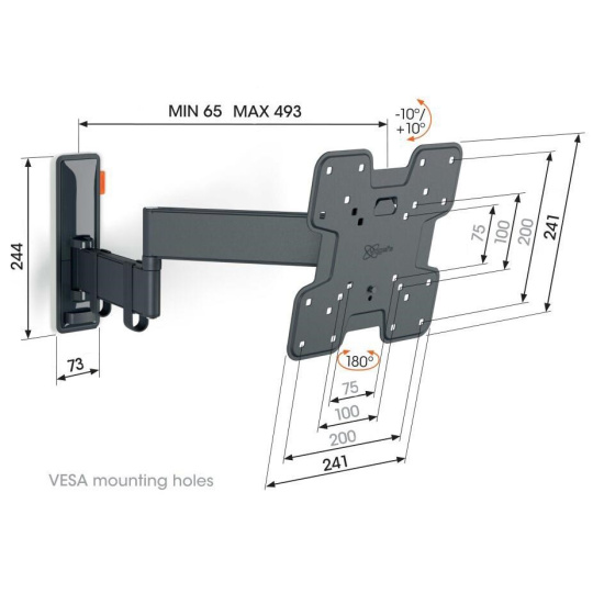 - Otočte televízor až o 180° vďaka 49 cm dlhým ramenám