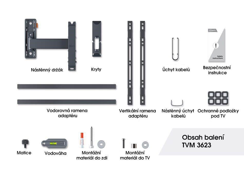 TVM 3623 COMFORT Nástenné rameno pre televízory s uhlopriečkou od 40 do 77 palcov Stylový a bezpečný Chcete si vychutnať svoj veľký plochý televízor bez akýchkoľvek starostí. S držiakom TVM 3623 radu COMFORT Full-Motion TV to zvládnete. Váš televízor bude na stene upevnený štýlovo a bezpečne. Nástenný držiak je špeciál... viac