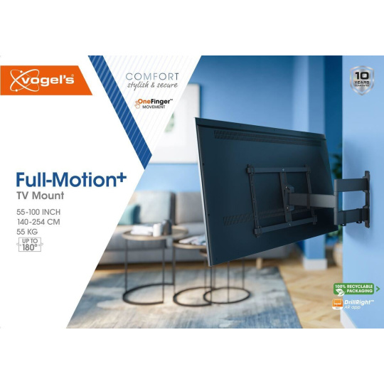 S nástenným držiakom rady COMFORT Full-Motion+ máte istotu bezpečného riešenia. Každý nástenný držiak televízora je certifikovaný TÜV a testovaný na trojnásobok svojej maximálnej nosnosti. Poskytovanie des desetročnej záruky má svoj dôvod.