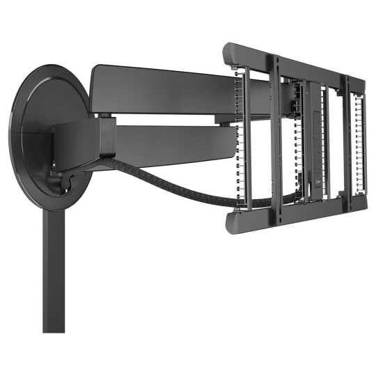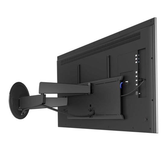 TV držiak DesignMount má dômyselný štyrramenný mechanizmus s dlhými a pevným nosnými ramenami. Vďaka tomu má veľký rozsah pohybu dopredu a umožňuje posunúť televízor až o 72 cm od steny. Ideálne pre montáž do skrinky alebo výklenku.