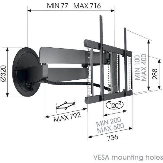 S nástenným držiakom TV DesignMount z radu SIGNATURE vnesiete do svojho domova úplný dizajnový zážitok. Tento nástenný TV držiak na televízor vytvára vlastnú triedu, pokiaľ ide o dizajn, kvalitu a komfort. Štýlový, minimalistický dizajn sa dokonale snúbi s najnovšou generáciou veľkých a tenkých televízorov, ako sú OLED a QLED televízory. Držiak je vhodný pre obrazovky o veľkosti 40 až 77 palcov a s maximálnou hmotnosťou 35 kg. Pre maximálny zážitok zo sledovania ho môžete natočiť až o 120°.