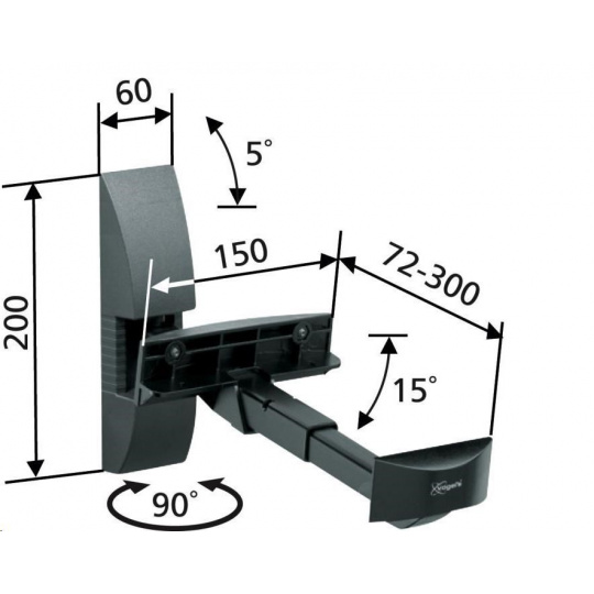 Nástenný držiak bez nutnosti vŕtania do reproduktorovej skrinky, ktorá je upnutá čeľusťovým mechanizmom. Ideálne pre stredne veľké regálové reproduktory
