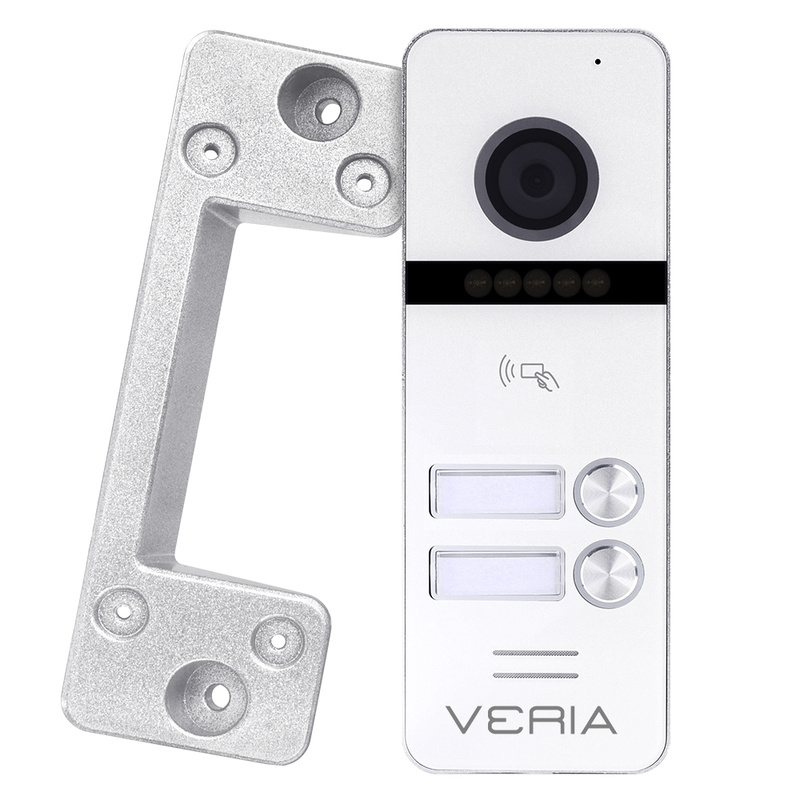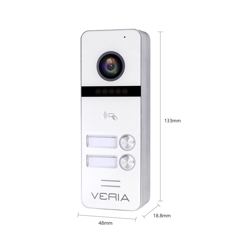 Vstupná kamerová jednotka VERIA 302 je vhodná na prepojenie s monitormi VERIA rady 3xxx. Kamerová jednotka sníma obraz vo Full HD rozlíšení, pre nočný prísvit používa IR LED diódy a pre kvalitný obraz IR Cut filter. Vstupná stanica disponuje vestavenou čítačkou RFID čipov 13,56 MHz. Prepojenie medzi monitorom a vstupnou stanicou je 4-vodičové.