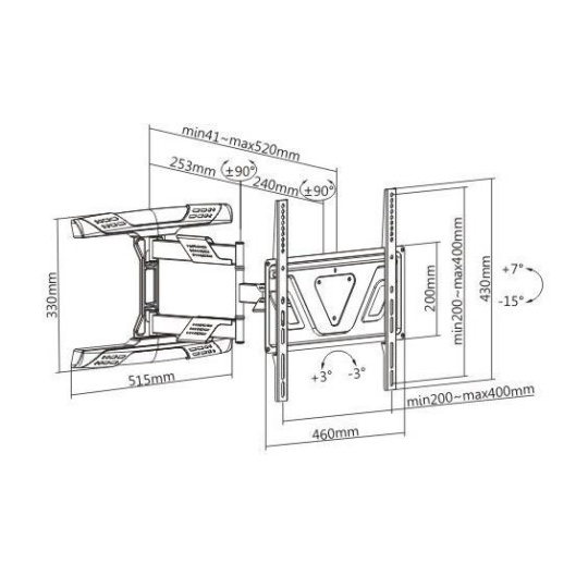 Výsuvný otočný sklápací držiak TV Fiber Mounts Super-1 Nástenný držiak vynikajúcej kvality a parametrov na TV 32-65", otáčanie +/-90°, naklápanie +7° / -15°, vzdialenosť od steny 41-520mm, VESA 200x100 až 400x400, nosnosť 35kg Televízny držiak SUPER-1 poskytuje naozaj širokú škálu polohovateľnosti - výsuv od steny 41mm až 520mm, otáčanie na obe strany až +/- 90°, naklápanie obrazovky +7° až -15°, korekciu roviny +/- 3°. Konštrukcia držiaka je opatrená krytmi s funkciou vedenia káblov. Držiak Fiber Mounts Super-1 je ideálny na televízie s uhlopriečkou 32" až 65", ktoré majú hmotnosť do 35kg a podporujú VESA štandardy od 200x100 do 400x400. Držiak uspokojí aj náročnejších používateľov, ktorí požadujú nielen výbornú kvalitu, ale aj pekný dizajn a jednoduché polohovanie. Držiak je dodávaný vrátane montážneho materiálu. Záruka 5 rokov Držiak na televízie Fiber Mounts Super-1 Technické údaje: nosnosť 35kg podporuje VESA štandardy 200x100 až 400x400 ideálny na televízie s uhlopriečkou 32" až 65" výsuvný, nastavenie vzdialenosti od steny od 41mm až do 520mm otáčanie na obe strany +/- 90° naklápanie televízora smerom nadol až o -15° a nahor až o +7° korekcia roviny +/- 3° veľký nástenný držiak pre bezpečné ukotvenie dizajnové kryty pre vedenie káblov veľmi pevnú a bezpečnú konštrukciu krásny vzhľad farebné prevedenie čierne záruka 5 rokov Držiak na LCD LED TV Fiber Mounts Super-1 Držiak na televízie Fiber Mounts Super-1 podporuje VESA štandardy: VESA 200x100 VESA 200x200 VESA 300x200 a 200x300 VESA 300x300 VESA 400x200 a 200x400 VESA 400x300 a 300x400 VESA 400x400 Nástenný držiak na televízie Fiber Mounts Super-1 je vhodný na všetky typy, značky aj veľkosti televízií, ktoré majú hmotnosť do 35kg a ktoré podporujú ktorýkoľvek z vyššie uvedených VESA štandardov. Na veľkosti (uhlopriečke) televízie vôbec nezáleží. Držiak na TV Fiber Mounts Super-1 umožňuje otočenie okoľko ku stene televízorom, ktoré majú šírku maximálne 94cm alebo menšiu. Televízie s väčšou šírkou otočíte o niečo menej.