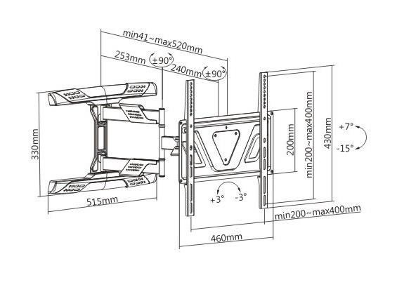 Výsuvný otočný sklápací držiak TV Fiber Mounts Super-1 Nástenný držiak vynikajúcej kvality a parametrov na TV 32-65", otáčanie +/-90°, naklápanie +7° / -15°, vzdialenosť od steny 41-520mm, VESA 200x100 až 400x400, nosnosť 35kg Televízny držiak SUPER-1 poskytuje naozaj širokú škálu polohovateľnosti - výsuv od steny 41mm až 520mm, otáčanie na obe strany až +/- 90°, naklápanie obrazovky +7° až -15°, korekciu roviny +/- 3°. Konštrukcia držiaka je opatrená krytmi s funkciou vedenia káblov. Držiak Fiber Mounts Super-1 je ideálny na televízie s uhlopriečkou 32" až 65", ktoré majú hmotnosť do 35kg a podporujú VESA štandardy od 200x100 do 400x400. Držiak uspokojí aj náročnejších používateľov, ktorí požadujú nielen výbornú kvalitu, ale aj pekný dizajn a jednoduché polohovanie. Držiak je dodávaný vrátane montážneho materiálu. Záruka 5 rokov Držiak na televízie Fiber Mounts Super-1 Technické údaje: nosnosť 35kg podporuje VESA štandardy 200x100 až 400x400 ideálny na televízie s uhlopriečkou 32" až 65" výsuvný, nastavenie vzdialenosti od steny od 41mm až do 520mm otáčanie na obe strany +/- 90° naklápanie televízora smerom nadol až o -15° a nahor až o +7° korekcia roviny +/- 3° veľký nástenný držiak pre bezpečné ukotvenie dizajnové kryty pre vedenie káblov veľmi pevnú a bezpečnú konštrukciu krásny vzhľad farebné prevedenie čierne záruka 5 rokov Držiak na LCD LED TV Fiber Mounts Super-1 Držiak na televízie Fiber Mounts Super-1 podporuje VESA štandardy: VESA 200x100 VESA 200x200 VESA 300x200 a 200x300 VESA 300x300 VESA 400x200 a 200x400 VESA 400x300 a 300x400 VESA 400x400 Nástenný držiak na televízie Fiber Mounts Super-1 je vhodný na všetky typy, značky aj veľkosti televízií, ktoré majú hmotnosť do 35kg a ktoré podporujú ktorýkoľvek z vyššie uvedených VESA štandardov. Na veľkosti (uhlopriečke) televízie vôbec nezáleží. Držiak na TV Fiber Mounts Super-1 umožňuje otočenie okoľko ku stene televízorom, ktoré majú šírku maximálne 94cm alebo menšiu. Televízie s väčšou šírkou otočíte o niečo menej.