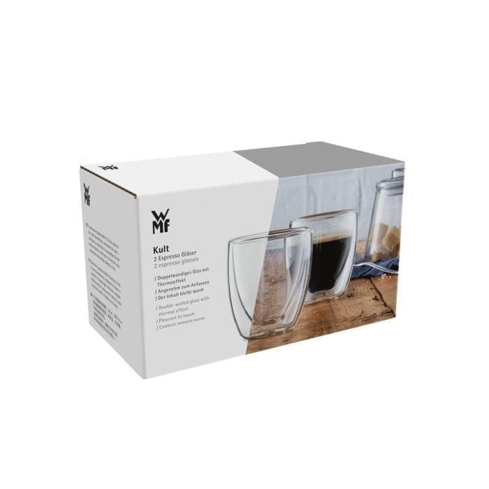 Sklenice na espresso z kolekcie WMF Kult predstavujú dokonalú rovnováhu medzi modernými funkciami a pútavým dizajnom. Dvostenná konštrukcia termo sklárne udržiava horúci aj studený obsah dlhšie v perfektných teplotách - ideálne pre širokú škálu použití, od klasického espressa po horúce alebo studené dezerty, amuse-bouche a mnoho ďalšieho - s bezpečným tepelnodolným sklom pre pitie bez manipulácie, ktoré je chladné na dotyk a bez kondenzácie.