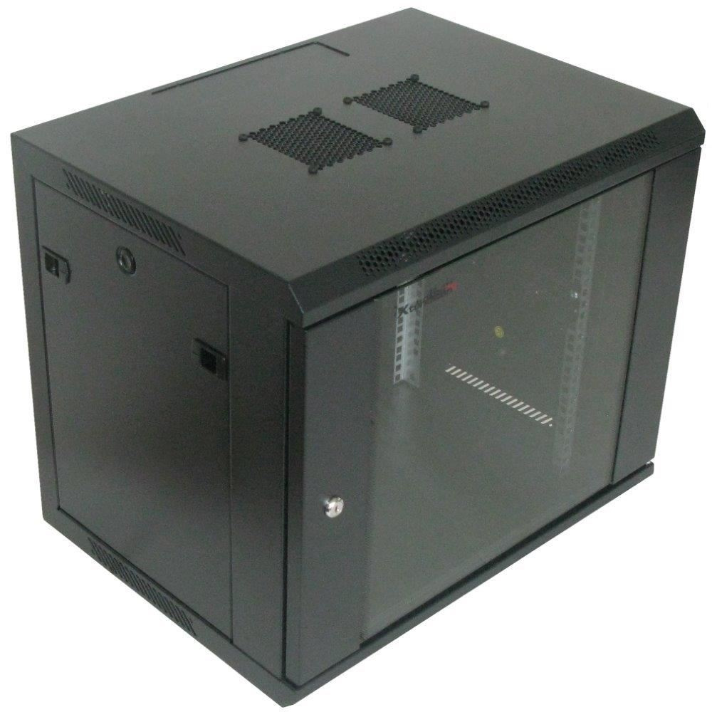 XtendLan 19" nástěnný rozvaděč 12U 600x600, nosnost 60 kg, skleněné dveře, rozložený, černý