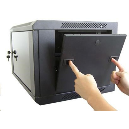XtendLan 19" nástěnný rozvaděč 6U 600x600, nosnost 60 kg, skleněné kouřové dveře, svařovaný, černý