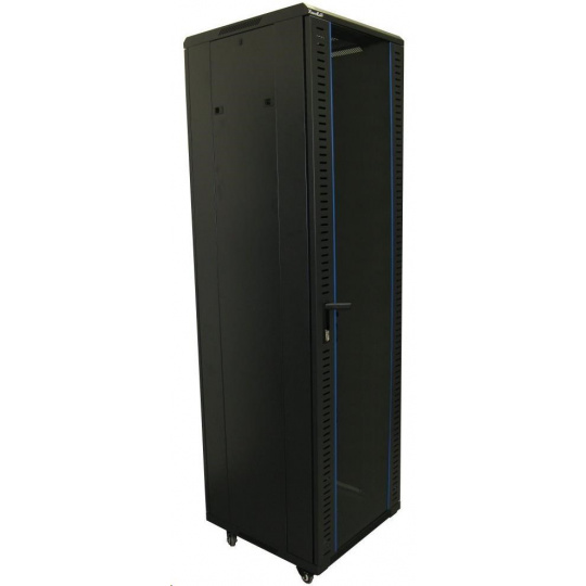 XtendLan 19" stojanový rozvaděč 42U 600x600, nosnost 500kg, skleněné dveře, plná záda, kolečka,černý