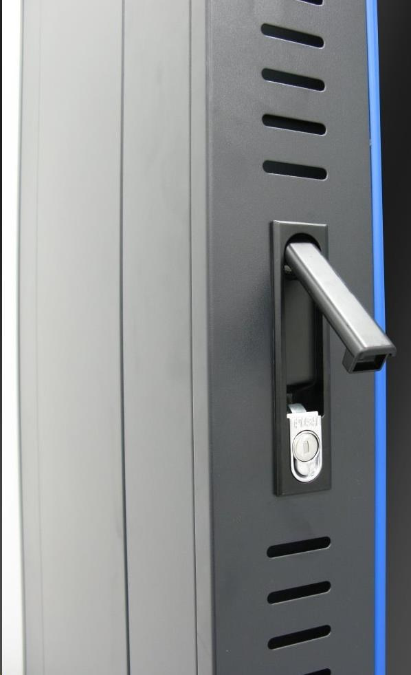 Rozvádzače sú výborne remeselne spracované. Vyrobené sú z valcovanej ocele, nosné časti sú z ocele hrúbky 2 mm, ostatné časti z 1,5 mm ocele. Pevná konštrukcia umožňuje statickú záťaž až 800 kg. Uzamykateľné predné a zadné dvere, rukou uzavierateľné a voliteľne uzamykateľné bočné panely. Dodáva sa s nohami, kolieskami a montážnou sadou. Je možné pridať podstavec. Kolieska aj nohy je možné nainštalovať súčasne a zabezpečiť tak stabilnú inštaláciu, ktorú je možné v prípade potreby ľahko presúvať. Vzhľad: dvere - bezpečnostné sklo, uzamykateľné zadný kryt - plný, uzamykateľný bočný kryt - plný, možné vybaviť zámkom