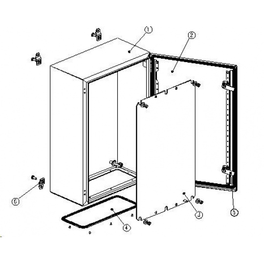 Univerzálny rozvádzač, IP66, oceľový, sivý. Trojvrstvová povrchová úprava (fosfátovanie, máčanie v základnom laku, práškový lak), vymeniteľné dvere, pevná konštrukcia. Odnímateľný kryt káblového prechodu. Rozvádzač je vyrobený z válcovanej ocele o hrúbke 1,5 mm. Štandardy: IEC60529, EN60529/10.91, GB4208-93 Vyhotovenie: dvere - plné, otvárateľné o 110 stupňov, montáž pravá alebo ľavá (užívateľsky vymeniteľné otváranie) zadný kryt - plný bočný kryt - plný horný kryt - plný montážna doska: