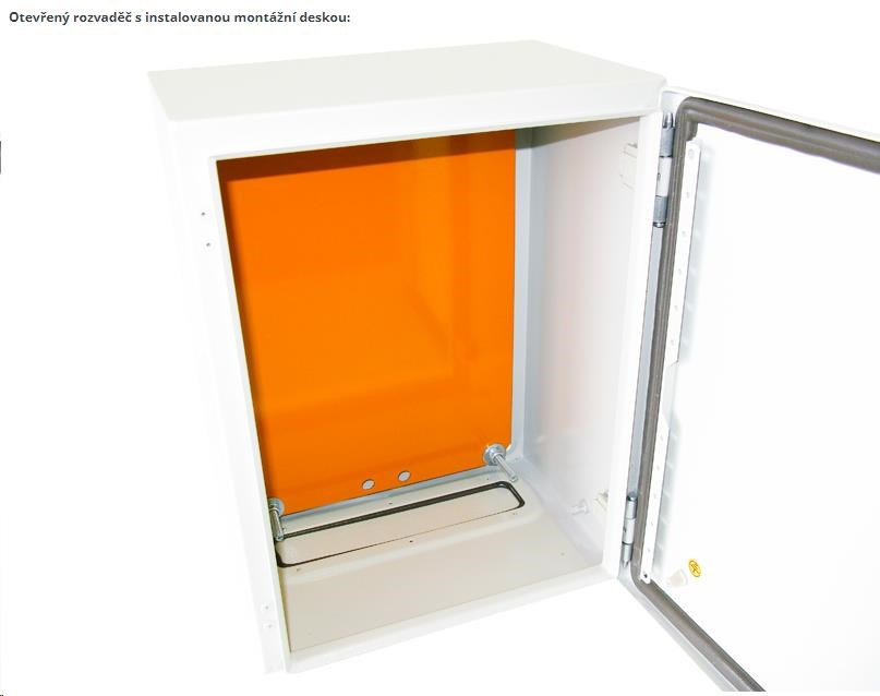 Univerzálny rozvádzač, IP66, oceľový, sivý. Trojvrstvová povrchová úprava (fosfátovanie, máčanie v základnom laku, práškový lak), vymeniteľné dvere, pevná konštrukcia. Odnímateľný kryt káblového prechodu. Rozvádzač je vyrobený z válcovanej ocele o hrúbke 1,5 mm. Štandardy: IEC60529, EN60529/10.91, GB4208-93 Vyhotovenie: dvere - plné, otvárateľné o 110 stupňov, montáž pravá alebo ľavá (užívateľsky vymeniteľné otváranie) zadný kryt - plný bočný kryt - plný horný kryt - plný montážna doska: