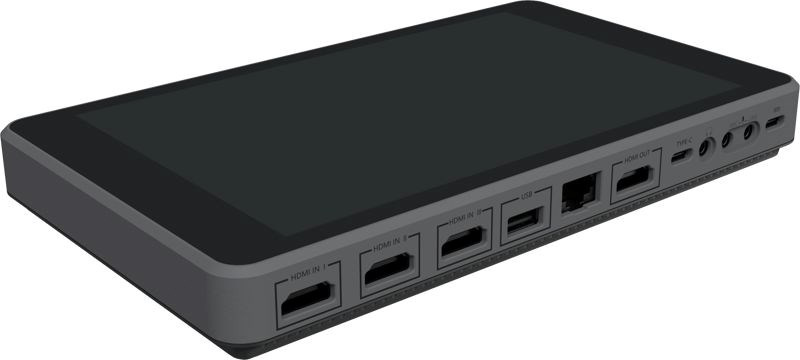 • Zariadenie funguje ako prepínač s radom šablón obrazu v obraze a grafických vrstiev. Obsahuje zabudovaný kodér, ktorý umožňuje živé streamovanie a môže nahrávať na voliteľné SD karty.